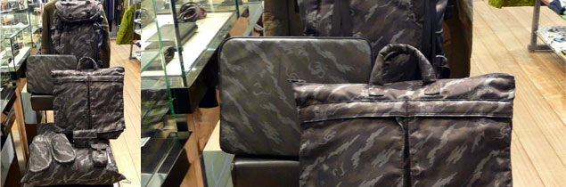 DPM has partnered with Porter and Medicom on a triple collaboration spanning a number of diverse products, including some of Porter’s classic styles ; the rucksack, wallet and US Army style helmet bag, as well as styles produced by Medicom Life Entertainment and Acycle ; house slippers, laptop cases and pillows. The bags feature the iconic use of orange in the lining, the high visibility counter to camouflage.